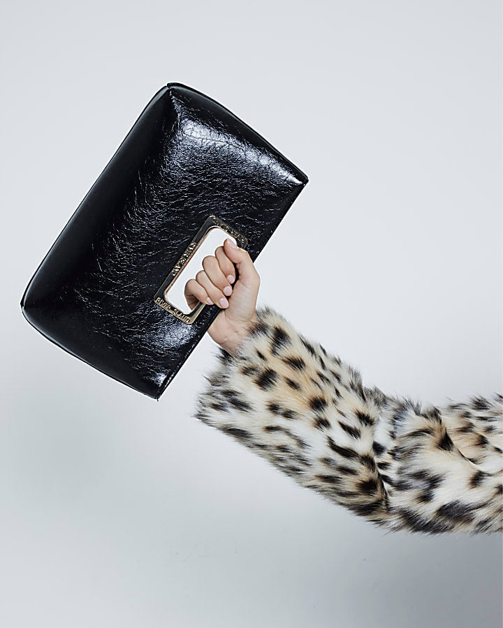 Black Metal Handle Clutch Bag