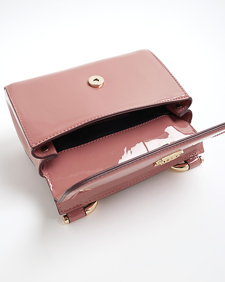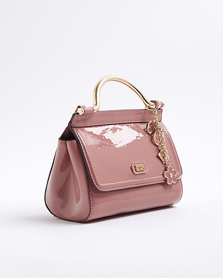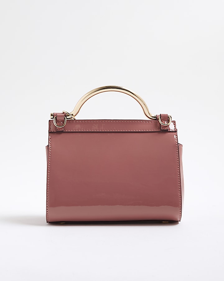 Pink Patent Metal Handle Mini Tote Bag